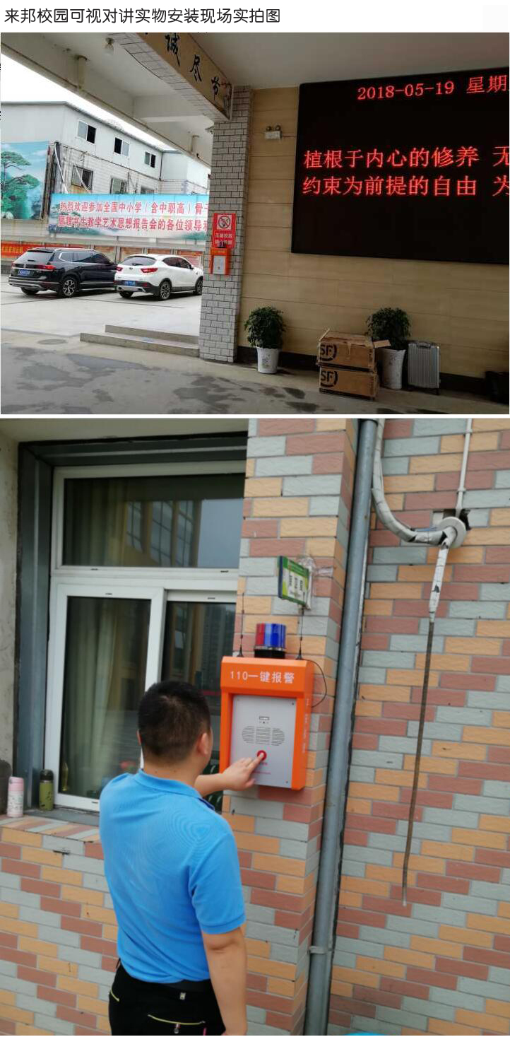 ?、?nbsp;一鍵報警、可視對講:在校門口、校內道路、教學樓等區域安裝可視對講報警終端,提供給學生使用,學生在需要幫助或發現打架、斗毆或其他危險警情時,通過可視對講報警終端設備一鍵報警到校保衛科的主機或監控中心平臺主機,與保衛科實現雙向可視對講,對于需要上報處理的,可逐漸上報。