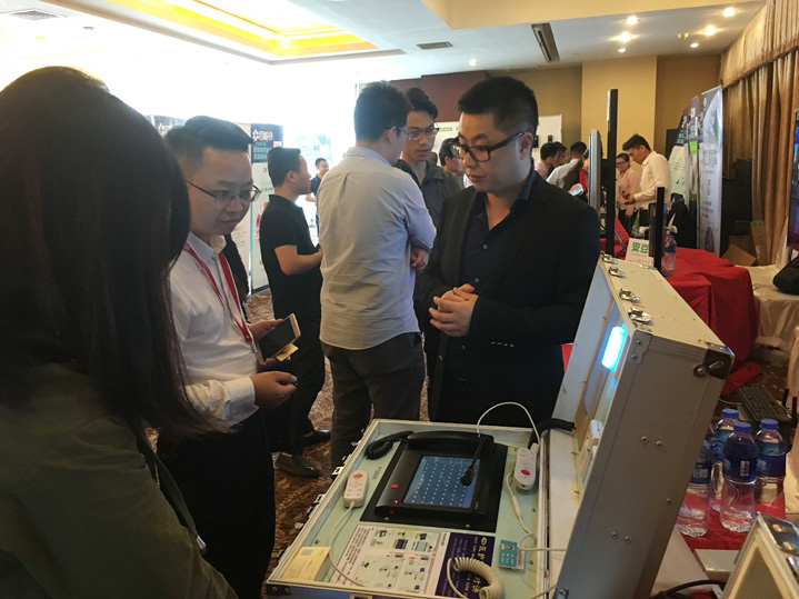 作為中國安防行業(yè)領(lǐng)先的安防專用對講產(chǎn)品及整體解決方案提供商,來邦科技在產(chǎn)品展示區(qū)域,集中展示了應(yīng)用于安防行業(yè)最新的醫(yī)院、銀行、監(jiān)獄專用對講新產(chǎn)品,吸引了南昌站點的現(xiàn)場觀眾的廣泛關(guān)注。會上,來邦科技常務(wù)副總經(jīng)理王慶現(xiàn)場分享了安防行業(yè)內(nèi)來邦醫(yī)院、銀行、監(jiān)獄專用對講領(lǐng)域新產(chǎn)品的領(lǐng)先技術(shù)和智慧整體解決方案的應(yīng)用。其中,醫(yī)院領(lǐng)域應(yīng)用到的新產(chǎn)品“一鍵式報警監(jiān)控對講系統(tǒng)”以及涵蓋醫(yī)院住院部、門診部、公共區(qū)域的智能醫(yī)護整體解決方案;銀行領(lǐng)域應(yīng)用到的新產(chǎn)品“窗口監(jiān)控對講系統(tǒng)”以及涵蓋銀行營業(yè)廳、自助區(qū)及加鈔區(qū)的整體解決方案;監(jiān)獄領(lǐng)域應(yīng)用到的新產(chǎn)品“智能監(jiān)倉對講系統(tǒng)”以及監(jiān)獄專業(yè)特有的創(chuàng)新智能化特色產(chǎn)品功能應(yīng)用和整體解決方案,備受南昌站點的現(xiàn)場觀眾高度好評與青睞。