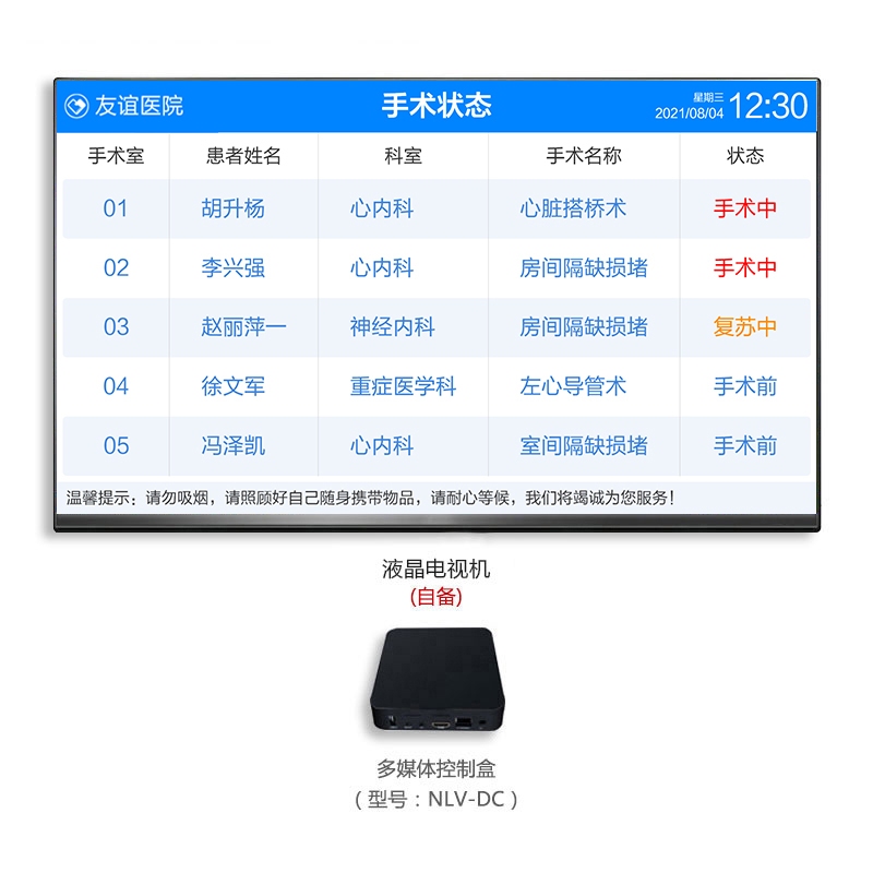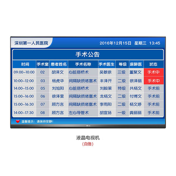 ? 可作為手術公告顯示屏使用,具有信息顯示、數據同步等功能。