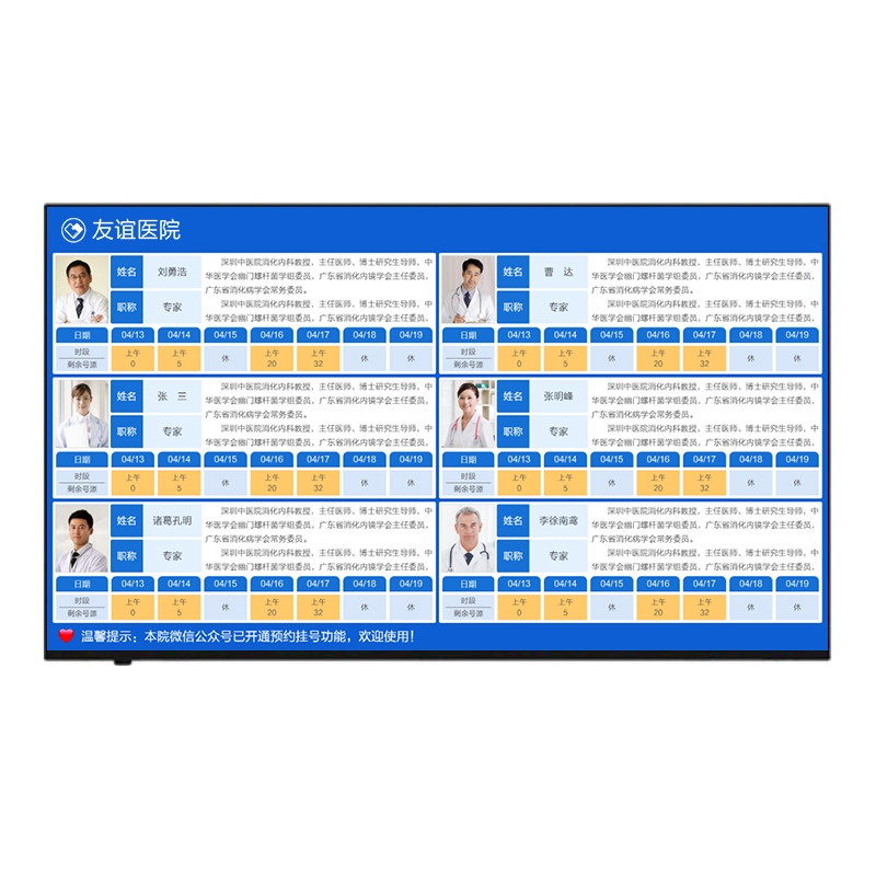 ? 具有接收展示健康宣教、科室宣傳、出診信息、藥品價格等信息的功能。