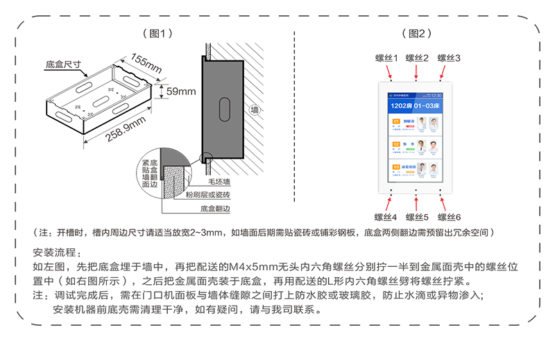 ? 采用10.2英寸高清液晶顯示屏,嵌入式安裝在病房門口。
