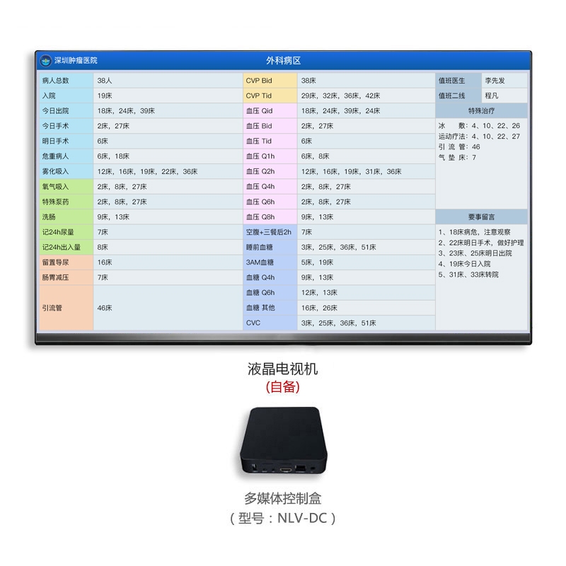 液晶電視機(自備)組成,可作為信息看板使用,安裝在護士站。